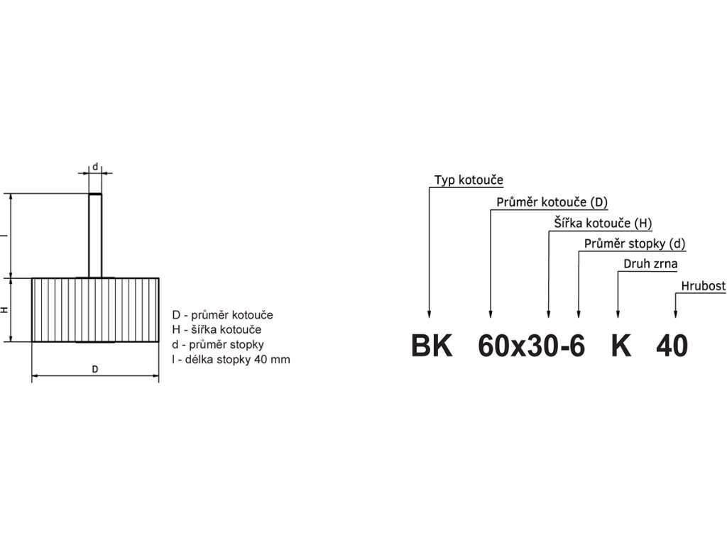 Stopkový kotouč Ø 60 mm, stopka Ø 6 mm, korund